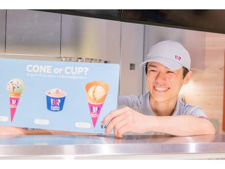 アイスクリーム専門店として 世界中にファンを持つ”サーティワン” その名前には 「1か月(31日間)、毎日違った アイスクリームをお楽しみいただきたい」 という想いがあります。 未経験歓迎!「人と接するのが好き」「お客様に喜んでもらいたい」そんな方にピッタリ